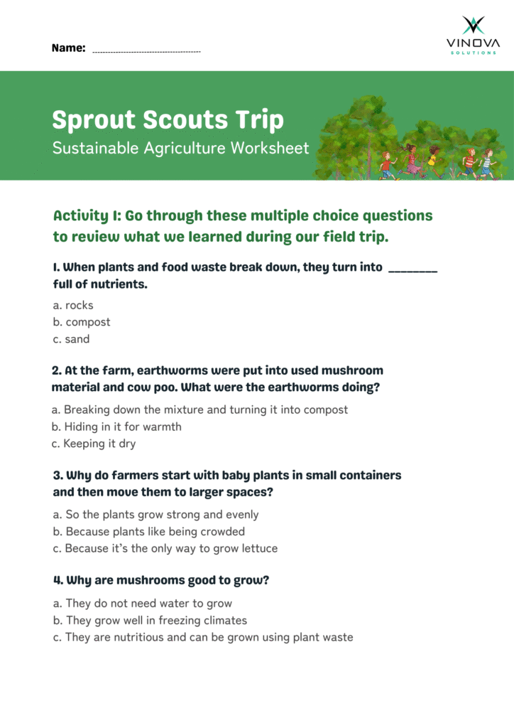 Content Writing, Editing and Content Design for Sustainable Agriculture Worksheet for Vinova Solutions