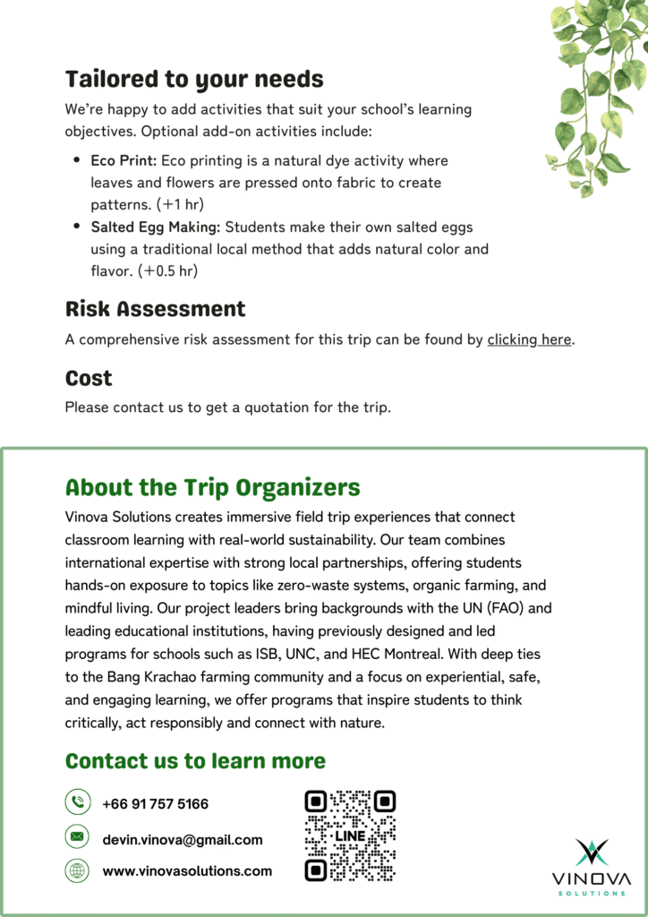 I edited and designed a brochure for Vinova Solutions, a company that organises educational field trips for international schools in Thailand.